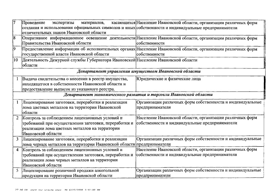 Постановление Правительства Ивановской области от 27.06.2008 N 170-п "Об утверждении перечня предоставляемых государственных услуг в зависимости от целей функционирования субъектов бюджетного планирования Ивановской области"