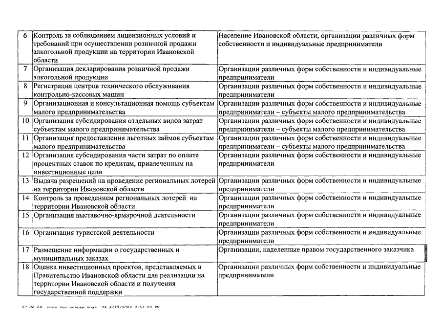 Постановление Правительства Ивановской области от 27.06.2008 N 170-п "Об утверждении перечня предоставляемых государственных услуг в зависимости от целей функционирования субъектов бюджетного планирования Ивановской области"