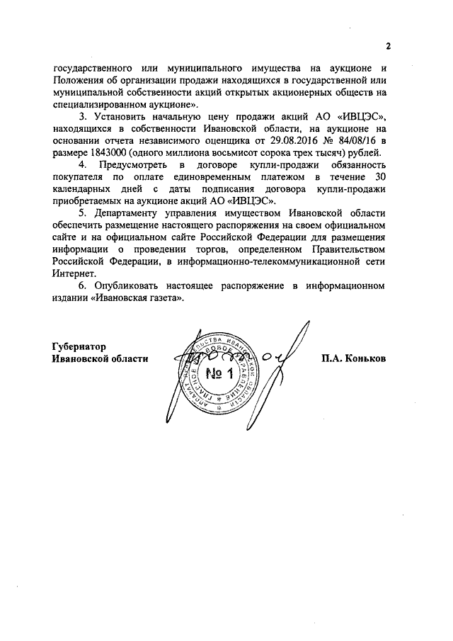 Распоряжение Правительства Ивановской области от 13.10.2016 N 208-рп "Об условиях приватизации акций акционерного общества "Ивановский центр энергосбережения", находящихся в собственности Ивановской области"