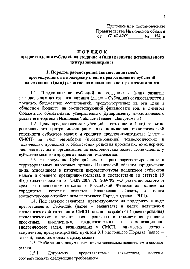 Постановление Правительства Ивановской области от 17.10.2016 N 346-п "Об утверждении Порядка предоставления субсидий на создание и (или) развитие регионального центра инжиниринга"