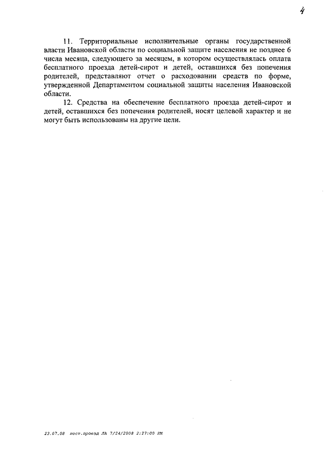 Постановление Правительства Ивановской области от 06.08.2008 N 210-п "Об утверждении Порядка предоставления бесплатного проезда детям-сиротам и детям, оставшимся без попечения родителей, обучающимся в областных государственных и муниципальных образовательных учреждениях"