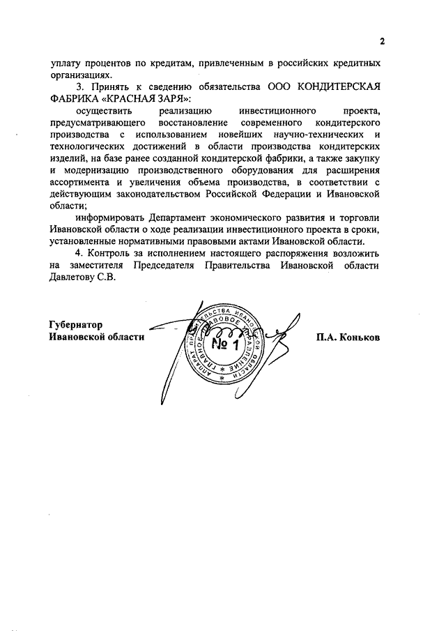 Распоряжение Правительства Ивановской области от 29.11.2016 N 251-рп "Об оказании государственной поддержки ООО КОНДИТЕРСКАЯ ФАБРИКА "КРАСНАЯ ЗАРЯ" на реализацию инвестиционного проекта "Проект производства кондитерских изделий"