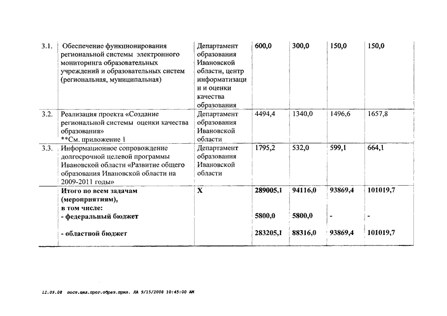 Постановление Правительства Ивановской области от 19.09.2008 N 243-п "Об утверждении долгосрочной целевой программы Ивановской области "Развитие общего образования Ивановской области на 2009 - 2011 годы"