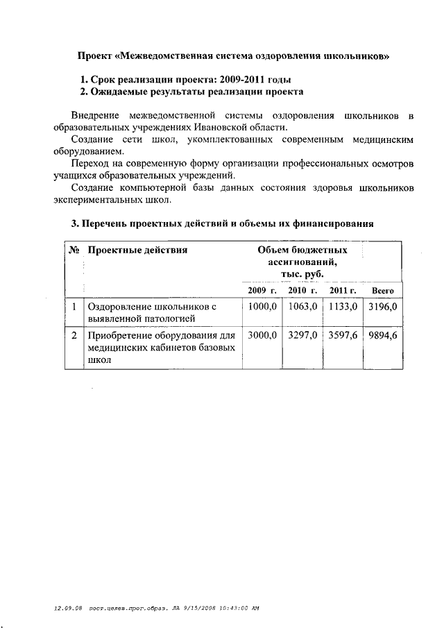 Постановление Правительства Ивановской области от 19.09.2008 N 243-п "Об утверждении долгосрочной целевой программы Ивановской области "Развитие общего образования Ивановской области на 2009 - 2011 годы"