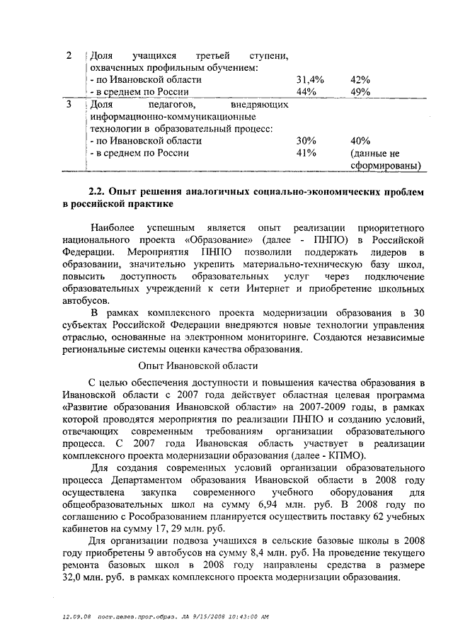 Постановление Правительства Ивановской области от 19.09.2008 N 243-п "Об утверждении долгосрочной целевой программы Ивановской области "Развитие общего образования Ивановской области на 2009 - 2011 годы"