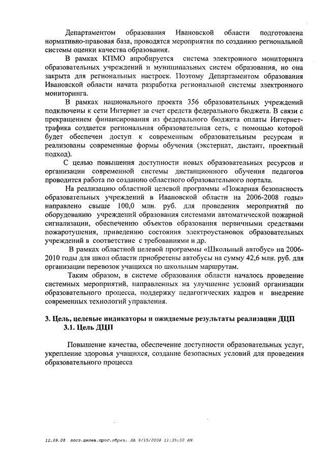Постановление Правительства Ивановской области от 19.09.2008 N 243-п "Об утверждении долгосрочной целевой программы Ивановской области "Развитие общего образования Ивановской области на 2009 - 2011 годы"
