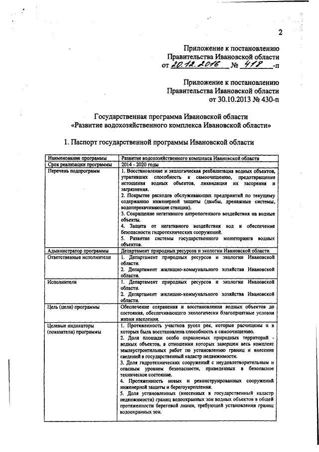 Постановление Правительства Ивановской области от 20.12.2016 N 418-п "О внесении изменения в постановление Правительства Ивановской области от 30.10.2013 N 430-п "Об утверждении государственной программы Ивановской области "Развитие водохозяйственного комплекса Ивановской области"