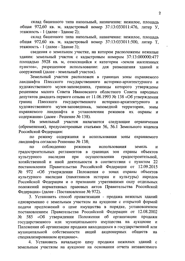 Распоряжение Правительства Ивановской области от 21.12.2016 N 266-рп "Об условиях приватизации нежилых зданий (мастерская, склады) с земельным участком по адресу: Ивановская область, Приволжский район, с. Северцево, находящихся в собственности Ивановской области"