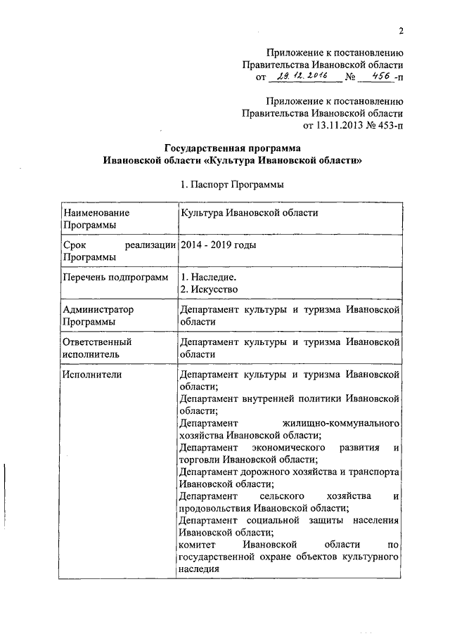 Постановление Правительства Ивановской области от 29.12.2016 N 456-п "О внесении изменения в постановление Правительства Ивановской области от 13.11.2013 N 453-п "Об утверждении государственной программы Ивановской области "Культура Ивановской области"