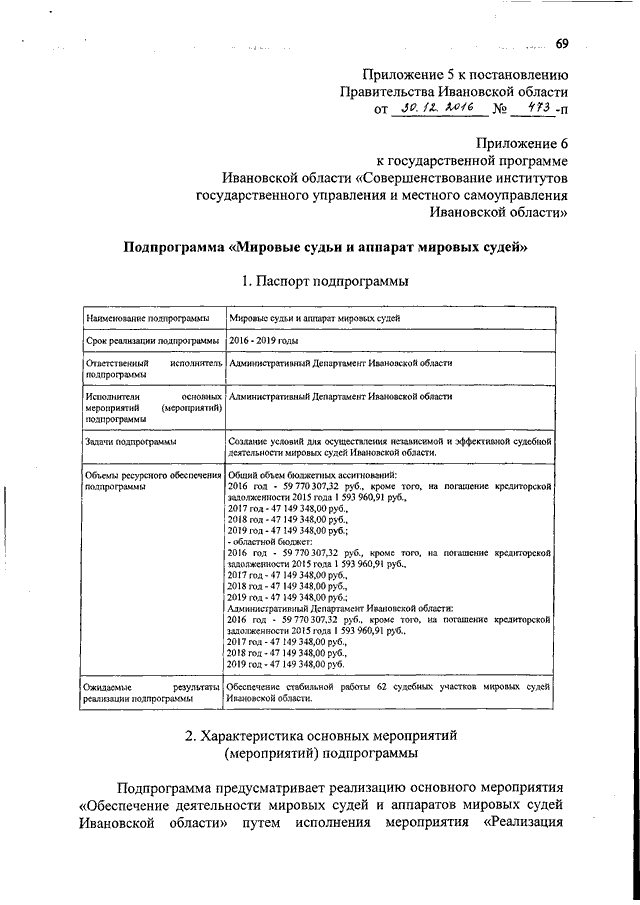 Постановление Правительства Ивановской области от 30.12.2016 N 473-п "О внесении изменений в постановление Правительства Ивановской области от 13.11.2013 N 454-п "Об утверждении государственной программы Ивановской области "Совершенствование институтов государственного управления и местного самоуправления Ивановской области" (вместе с "Подпрограммой "Обеспечение деятельности органов государственной власти Ивановской области", "Подпрограммой "Информационная открытость органов государственной власти Ивановской области и общественные связи", "Подпрограммой "Развитие государственной гражданской службы Ивановской области", "Подпрограммой "Организация вручения наград", "Подпрограммой "Мировые судьи и аппарат мировых судей")