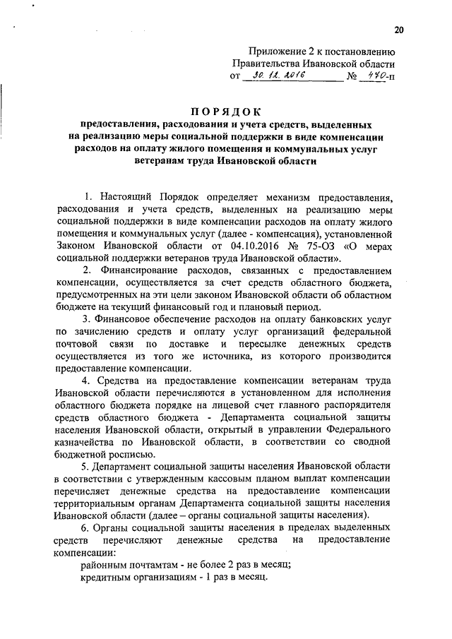 Постановление Правительства Ивановской области от 30.12.2016 N 470-п "Об утверждении Порядка предоставления компенсации расходов на оплату жилого помещения и коммунальных услуг ветеранам труда Ивановской области и Порядка предоставления, расходования и учета средств, выделенных на реализацию меры социальной поддержки в виде компенсации расходов на оплату жилого помещения и коммунальных услуг ветеранам труда Ивановской области"