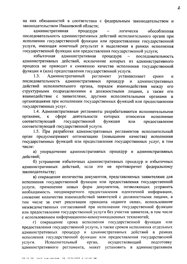 Постановление Правительства Ивановской области от 15.10.2008 N 269-п "Об административных регламентах исполнения государственных функций и административных регламентах предоставления государственных услуг" (вместе с "Порядком разработки и утверждения административных регламентов исполнения государственных функций и административных регламентов предоставления государственных услуг")