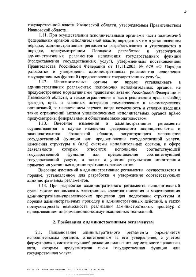 Постановление Правительства Ивановской области от 15.10.2008 N 269-п "Об административных регламентах исполнения государственных функций и административных регламентах предоставления государственных услуг" (вместе с "Порядком разработки и утверждения административных регламентов исполнения государственных функций и административных регламентов предоставления государственных услуг")