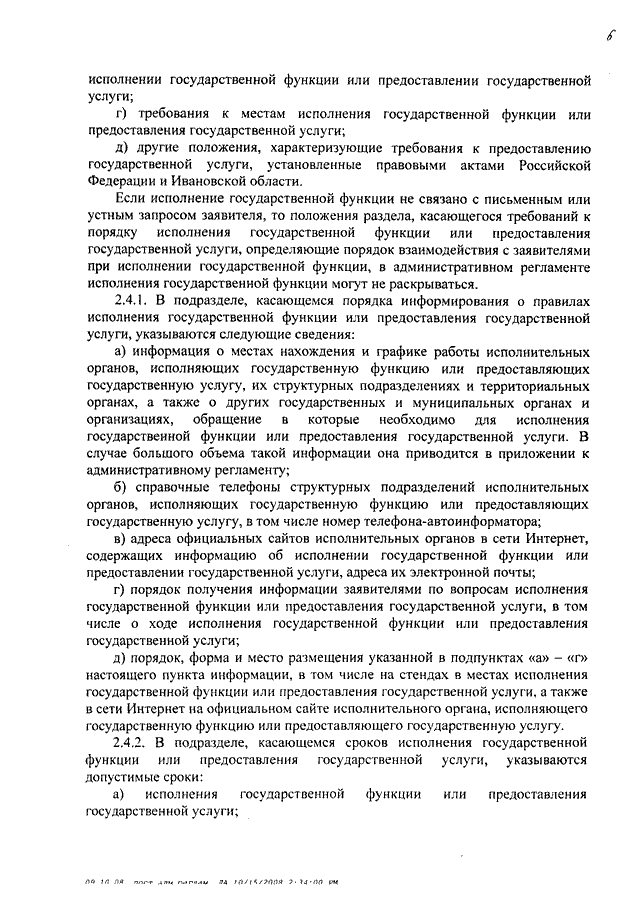 Постановление Правительства Ивановской области от 15.10.2008 N 269-п "Об административных регламентах исполнения государственных функций и административных регламентах предоставления государственных услуг" (вместе с "Порядком разработки и утверждения административных регламентов исполнения государственных функций и административных регламентов предоставления государственных услуг")