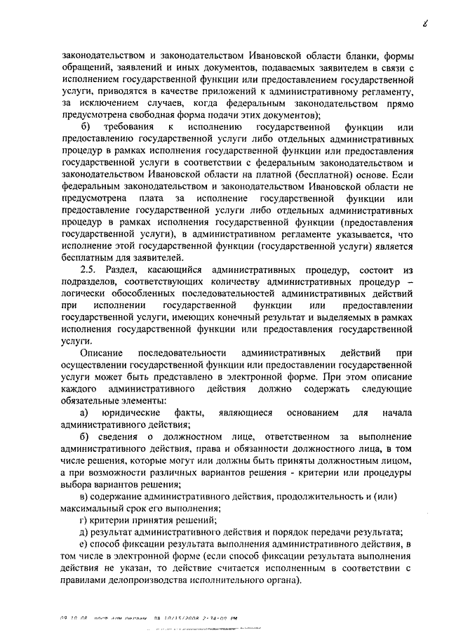 Постановление Правительства Ивановской области от 15.10.2008 N 269-п "Об административных регламентах исполнения государственных функций и административных регламентах предоставления государственных услуг" (вместе с "Порядком разработки и утверждения административных регламентов исполнения государственных функций и административных регламентов предоставления государственных услуг")