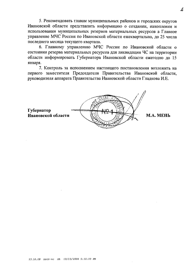 Постановление Правительства Ивановской области от 22.10.2008 N 278-п "О порядке создания, хранения, использования и восполнения резерва материальных ресурсов для ликвидации чрезвычайных ситуаций межмуниципального и регионального характера на территории Ивановской области" (вместе с "Номенклатурой и объемами накопления резерва материальных ресурсов для ликвидации чрезвычайных ситуаций межмуниципального и регионального характера на территории Ивановской области")