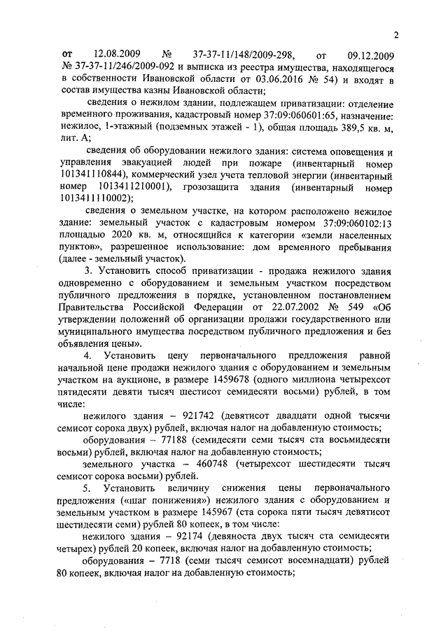 Распоряжение Правительства Ивановской области от 18.01.2017 N 3-рп "Об условиях приватизации нежилого здания с земельным участком по адресу: Ивановская область, Лежневский район, с. Новые Горки, ул. Большая Шуйская, д. 9а, находящихся в собственности Ивановской области"