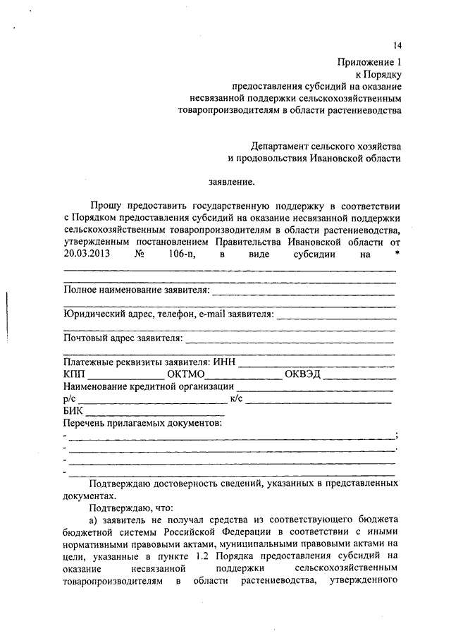 Постановление Правительства Ивановской области от 08.02.2017 N 29-п "О внесении изменений в постановление Правительства Ивановской области от 20.03.2013 N 106-п "Об утверждении Порядка предоставления субсидий на оказание несвязанной поддержки сельскохозяйственным товаропроизводителям в области растениеводства, а также в области развития производства семенного картофеля и овощей открытого грунта"