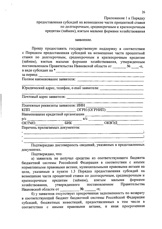Постановление Правительства Ивановской области от 07.02.2017 N 27-п "Об утверждении порядков предоставления субсидий на возмещение части процентной ставки по краткосрочным кредитам (займам), субсидий на возмещение части процентной ставки по долгосрочным, среднесрочным и краткосрочным кредитам (займам), взятым малыми формами хозяйствования"