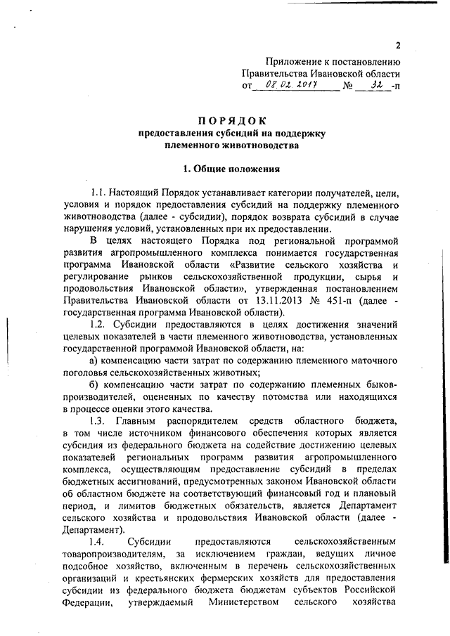 Постановление Правительства Ивановской области от 08.02.2017 N 32-п "Об утверждении Порядка предоставления субсидий на поддержку племенного животноводства"