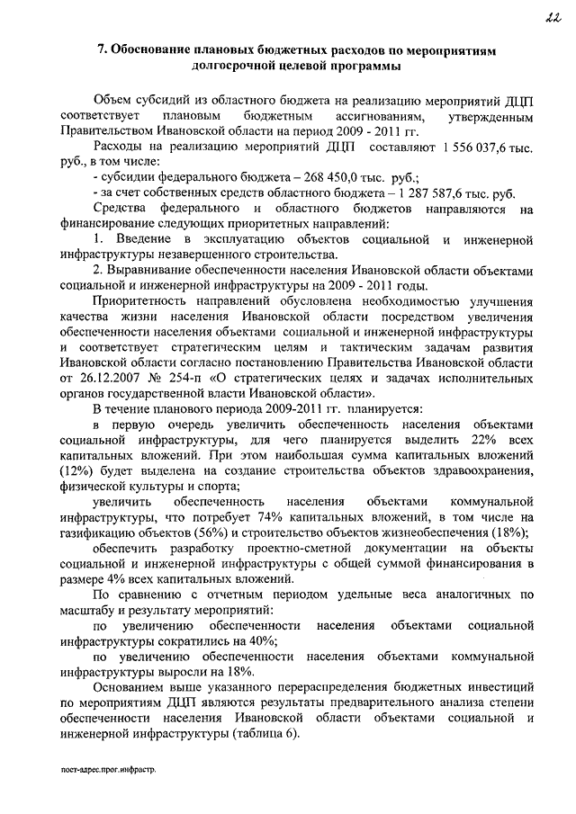 Постановление Правительства Ивановской области от 12.11.2008 N 288-п "Об утверждении долгосрочной целевой программы Ивановской области по выравниванию обеспеченности населения Ивановской области объектами социальной и инженерной инфраструктуры на 2009 - 2011 годы"