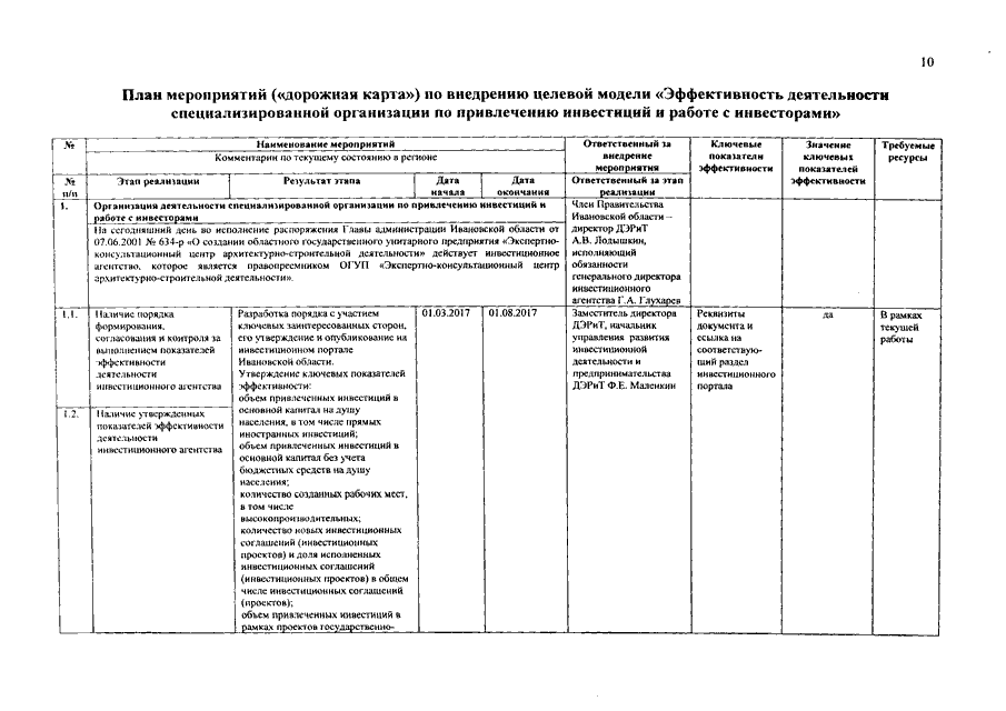 Распоряжение Правительства Ивановской области от 28.02.2017 N 15-рп "Об утверждении планов мероприятий ("дорожных карт") по целевым моделям "Наличие и качество регионального законодательства о механизмах защиты инвесторов и поддержки инвестиционной деятельности", "Эффективность обратной связи и работы каналов прямой связи инвесторов и руководства Ивановской области", "Эффективность деятельности специализированной организации по привлечению инвестиций и работе с инвесторами", "Качество инвестиционного портала Ивановской области"