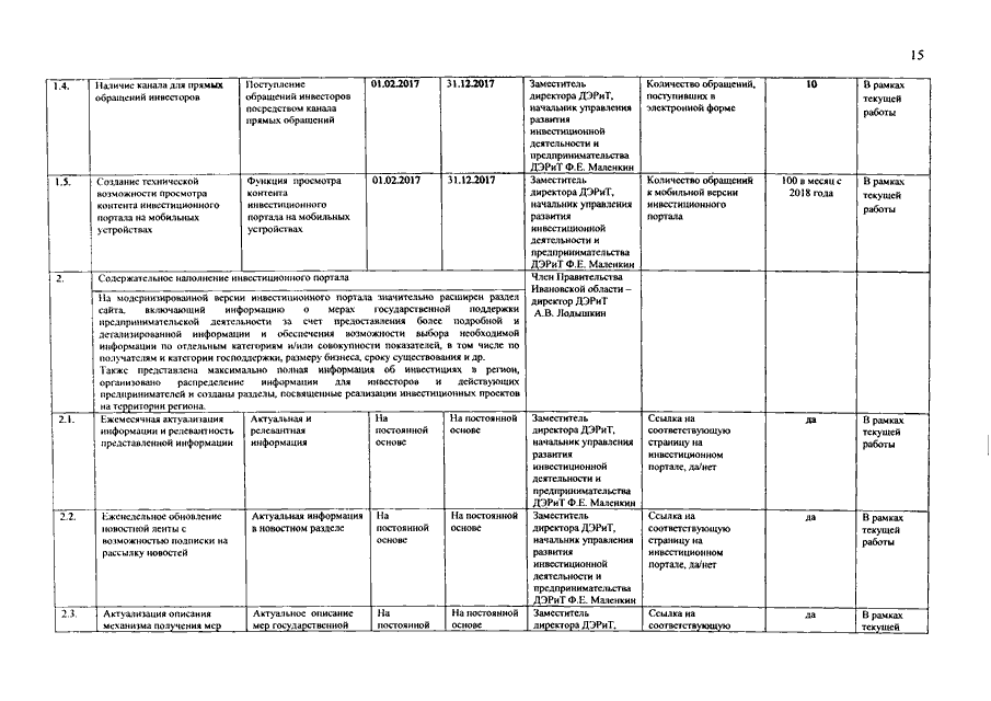 Распоряжение Правительства Ивановской области от 28.02.2017 N 15-рп "Об утверждении планов мероприятий ("дорожных карт") по целевым моделям "Наличие и качество регионального законодательства о механизмах защиты инвесторов и поддержки инвестиционной деятельности", "Эффективность обратной связи и работы каналов прямой связи инвесторов и руководства Ивановской области", "Эффективность деятельности специализированной организации по привлечению инвестиций и работе с инвесторами", "Качество инвестиционного портала Ивановской области"