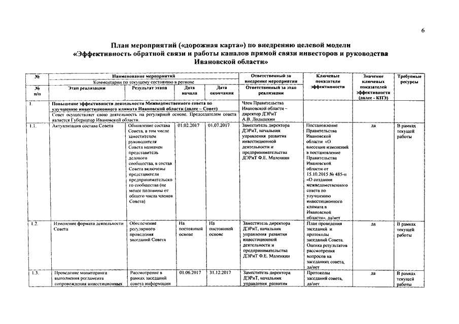 Распоряжение Правительства Ивановской области от 28.02.2017 N 15-рп "Об утверждении планов мероприятий ("дорожных карт") по целевым моделям "Наличие и качество регионального законодательства о механизмах защиты инвесторов и поддержки инвестиционной деятельности", "Эффективность обратной связи и работы каналов прямой связи инвесторов и руководства Ивановской области", "Эффективность деятельности специализированной организации по привлечению инвестиций и работе с инвесторами", "Качество инвестиционного портала Ивановской области"
