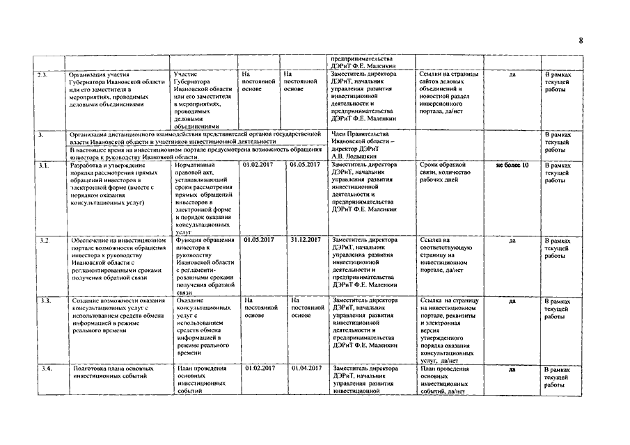 Распоряжение Правительства Ивановской области от 28.02.2017 N 15-рп "Об утверждении планов мероприятий ("дорожных карт") по целевым моделям "Наличие и качество регионального законодательства о механизмах защиты инвесторов и поддержки инвестиционной деятельности", "Эффективность обратной связи и работы каналов прямой связи инвесторов и руководства Ивановской области", "Эффективность деятельности специализированной организации по привлечению инвестиций и работе с инвесторами", "Качество инвестиционного портала Ивановской области"