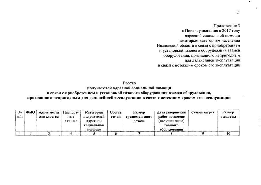 Постановление Правительства Ивановской области от 07.03.2017 N 65-п "Об утверждении Порядка оказания в 2017 году адресной социальной помощи некоторым категориям населения Ивановской области в связи с приобретением и установкой газового оборудования взамен оборудования, признанного непригодным для дальнейшей эксплуатации в связи с истекшим сроком его эксплуатации"