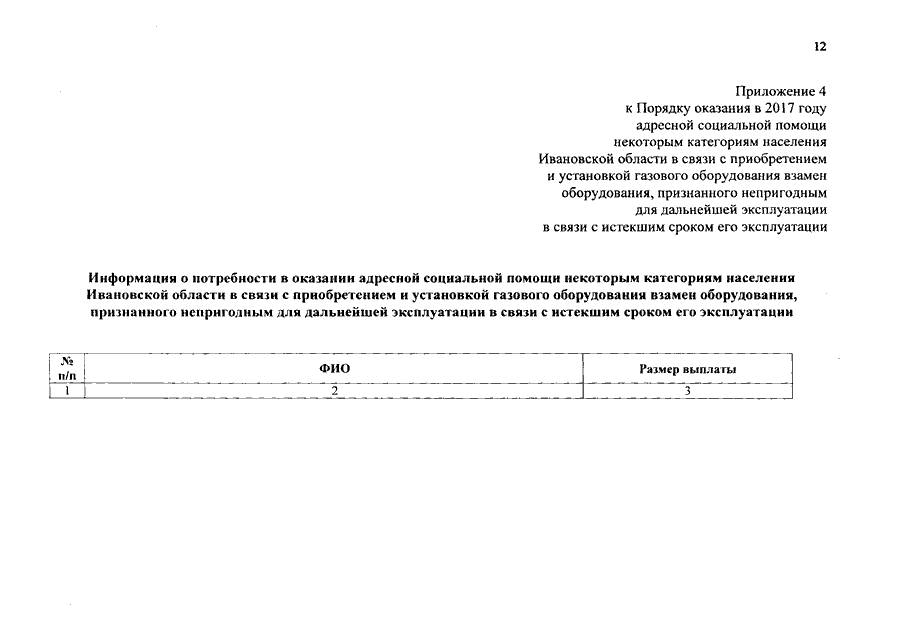 Постановление Правительства Ивановской области от 07.03.2017 N 65-п "Об утверждении Порядка оказания в 2017 году адресной социальной помощи некоторым категориям населения Ивановской области в связи с приобретением и установкой газового оборудования взамен оборудования, признанного непригодным для дальнейшей эксплуатации в связи с истекшим сроком его эксплуатации"
