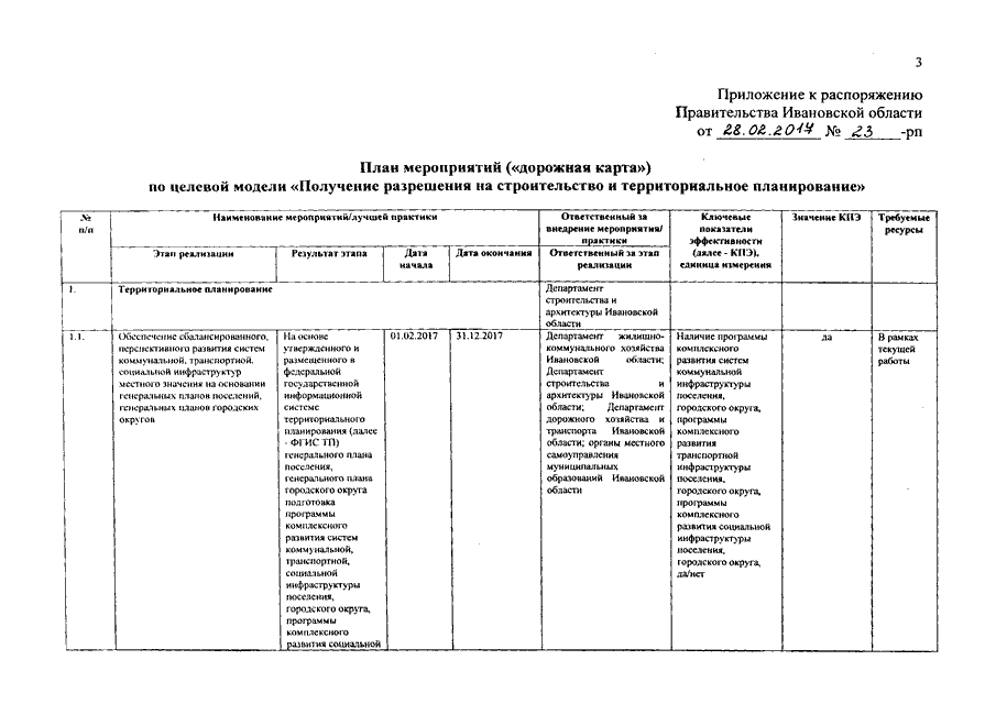 Распоряжение Правительства Ивановской области от 28.02.2017 N 23-рп "Об утверждении плана мероприятий ("дорожной карты") по целевой модели "Получение разрешения на строительство и территориальное планирование"