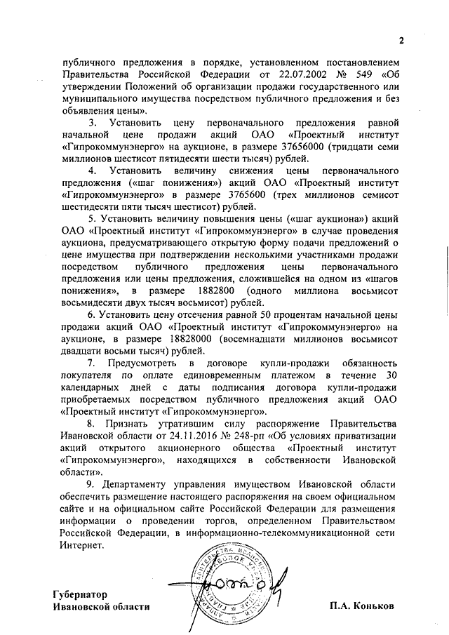 Распоряжение Правительства Ивановской области от 02.03.2017 N 27-рп "Об условиях приватизации акций открытого акционерного общества "Проектный институт "Гипрокоммунэнерго", находящихся в собственности Ивановской области"