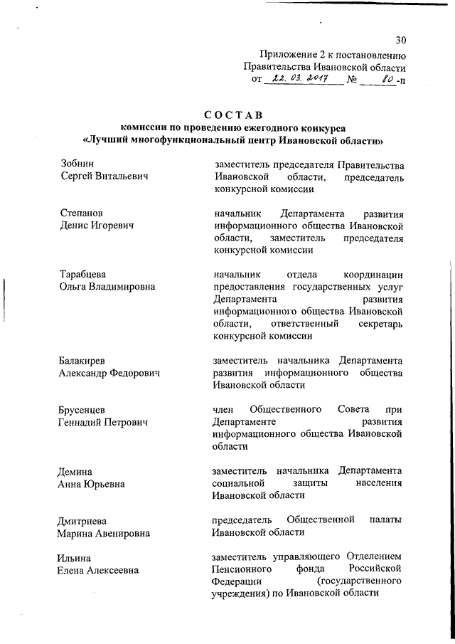 Постановление Правительства Ивановской области от 22.03.2017 N 80-п "О проведении ежегодного конкурса "Лучший многофункциональный центр Ивановской области" (вместе с "Положением о проведении ежегодного конкурса "Лучший многофункциональный центр Ивановской области")