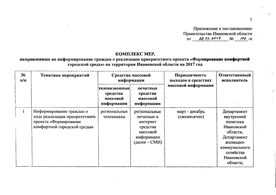 Постановление Правительства Ивановской области от 29.03.2017 N 108-п "Об утверждении комплекса мер, направленных на информирование граждан о реализации приоритетного проекта "Формирование комфортной городской среды" на территории Ивановской области на 2017 год"