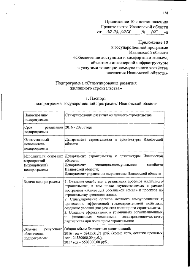 Постановление Правительства Ивановской области от 30.03.2017 N 115-п "О внесении изменений в постановление Правительства Ивановской области от 13.11.2013 N 458-п "Об утверждении государственной программы Ивановской области "Обеспечение доступным и комфортным жильем, объектами инженерной инфраструктуры и услугами жилищно-коммунального хозяйства населения Ивановской области" (вместе с "Подпрограммой "Обеспечение жильем отдельных категорий граждан", "Подпрограммой "Реализация мероприятий по обеспечению населения Ивановской области теплоснабжением, водоснабжением и водоотведением", "Подпрограммой "Предупреждение аварийных ситуаций на объектах ЖКХ Ивановской области", "Подпрограммой "Переселение из аварийного жилищного фонда", "Подпрограммой "Повышение эффективности организации строительства, реконструкции и капитального ремонта объектов, находящихся в собственности Ивановской области", "Подпрограммой "Развитие жилищно-коммунальной сферы", "Подпрограммой "Развитие газификации Ивановской области", "Подпрограммой "Обеспечение жильем молодых семей", "Подпрограммой "Государственная поддержка граждан в сфере ипотечного жилищного кредитования", "Подпрограммой "Стимулирование развития жилищного строительства")
