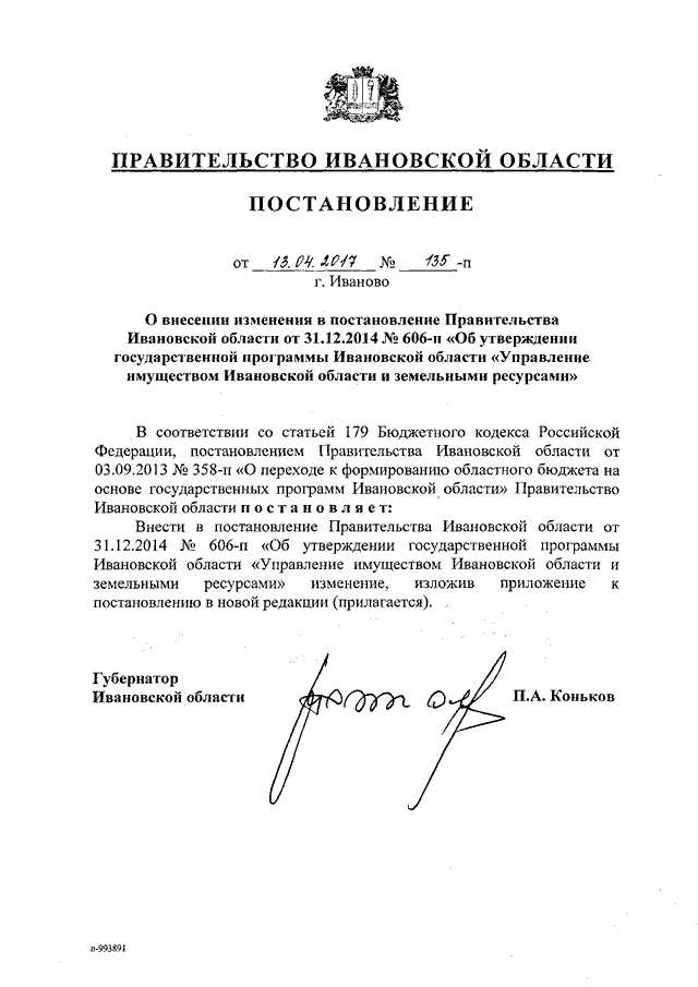 Постановление Правительства Ивановской области от 13.04.2017 N 135-п "О внесении изменения в постановление Правительства Ивановской области от 31.12.2014 N 606-п "Об утверждении государственной программы Ивановской области "Управление имуществом Ивановской области и земельными ресурсами"