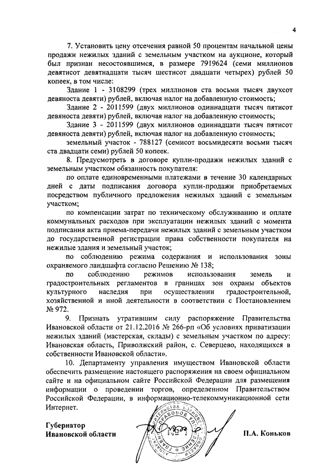 Распоряжение Правительства Ивановской области от 11.04.2017 N 49-рп "Об условиях приватизации нежилых зданий (мастерская, склады) с земельным участком по адресу: Ивановская область, Приволжский район, с. Северцево, находящихся в собственности Ивановской области"