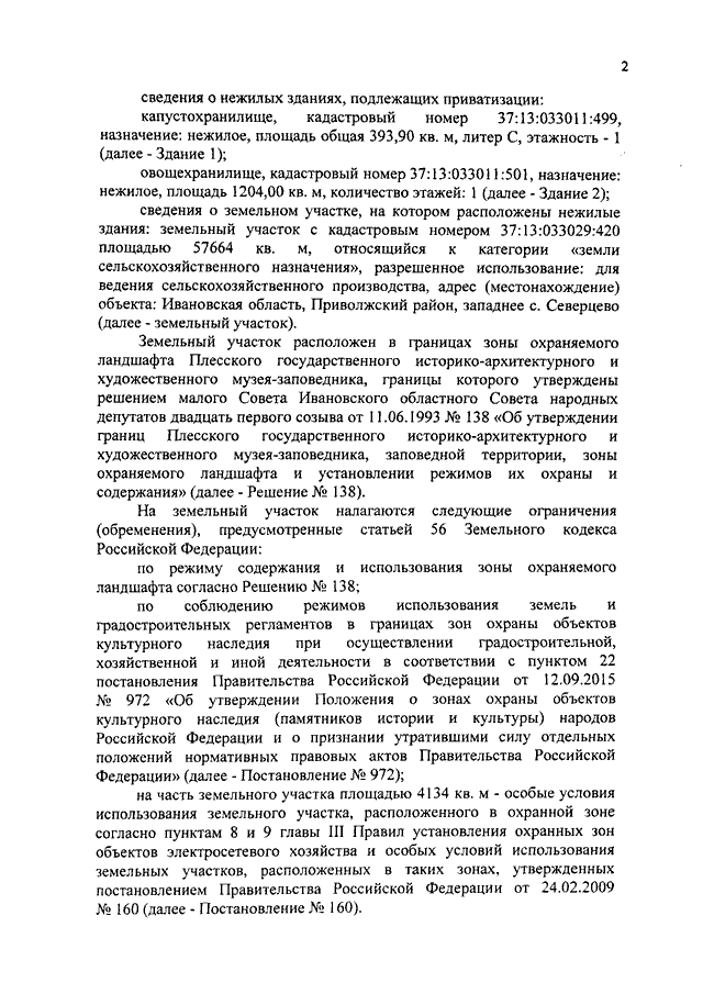 Распоряжение Правительства Ивановской области от 11.04.2017 N 50-рп "Об условиях приватизации нежилых зданий (капустохранилище и овощехранилище) с земельным участком по адресу: Ивановская область, Приволжский район, с. Северцево, находящихся в собственности Ивановской области"