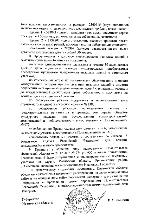 Распоряжение Правительства Ивановской области от 11.04.2017 N 50-рп "Об условиях приватизации нежилых зданий (капустохранилище и овощехранилище) с земельным участком по адресу: Ивановская область, Приволжский район, с. Северцево, находящихся в собственности Ивановской области"
