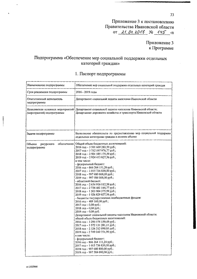 Постановление Правительства Ивановской области от 21.04.2017 N 145-п "О внесении изменений в постановление Правительства Ивановской области от 15.10.2013 N 393-п "Об утверждении государственной программы Ивановской области "Социальная поддержка граждан в Ивановской области" (вместе с "Подпрограммой "Модернизация и развитие социального обслуживания населения", "Подпрограммой "Совершенствование системы государственного обеспечения детей-сирот и детей, оставшихся без попечения родителей, в организациях для детей-сирот и детей, оставшихся без попечения родителей", "Подпрограммой "Обеспечение мер социальной поддержки отдельных категорий граждан", "Подпрограммой "Реализация государственной политики в интересах семьи и детей", "Подпрограммой "Организация мероприятий в интересах отдельных категорий граждан", "Подпрограммой "Формирование доступной среды жизнедеятельности для инвалидов и других маломобильных групп населения в Ивановской области")