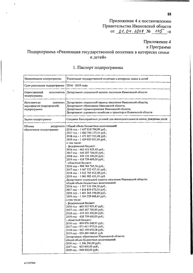 Постановление Правительства Ивановской области от 21.04.2017 N 145-п "О внесении изменений в постановление Правительства Ивановской области от 15.10.2013 N 393-п "Об утверждении государственной программы Ивановской области "Социальная поддержка граждан в Ивановской области" (вместе с "Подпрограммой "Модернизация и развитие социального обслуживания населения", "Подпрограммой "Совершенствование системы государственного обеспечения детей-сирот и детей, оставшихся без попечения родителей, в организациях для детей-сирот и детей, оставшихся без попечения родителей", "Подпрограммой "Обеспечение мер социальной поддержки отдельных категорий граждан", "Подпрограммой "Реализация государственной политики в интересах семьи и детей", "Подпрограммой "Организация мероприятий в интересах отдельных категорий граждан", "Подпрограммой "Формирование доступной среды жизнедеятельности для инвалидов и других маломобильных групп населения в Ивановской области")