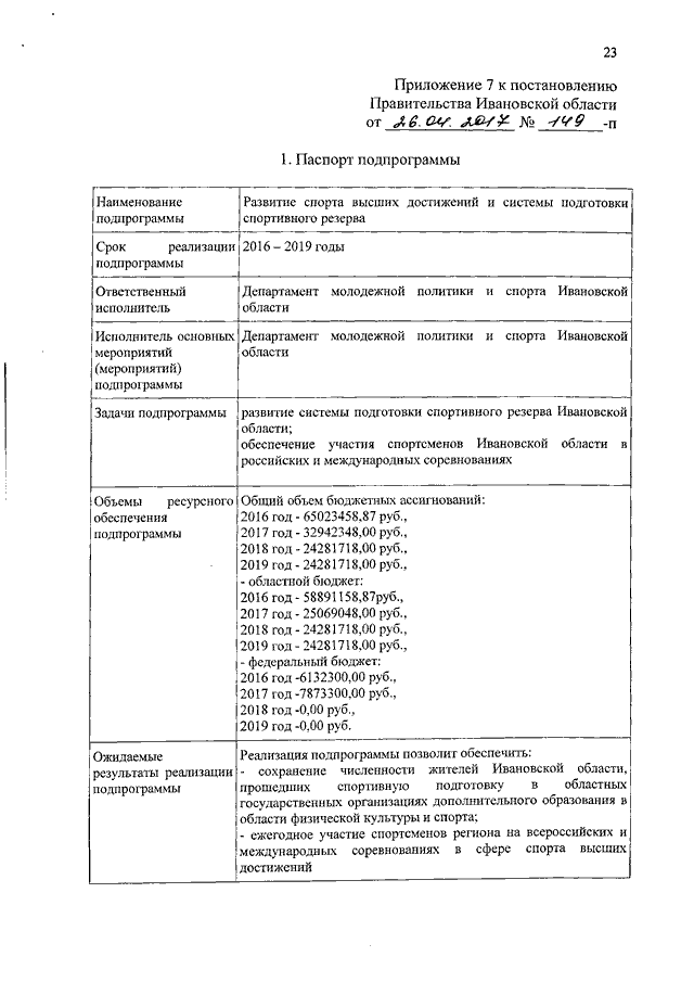 Постановление Правительства Ивановской области от 26.04.2017 N 149-п "О внесении изменений в постановление Правительства Ивановской области от 18.02.2016 N 43-п "Об утверждении государственной программы Ивановской области "Развитие физической культуры и спорта в Ивановской области"