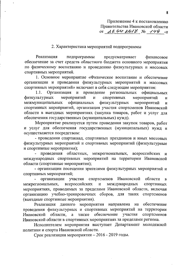 Постановление Правительства Ивановской области от 26.04.2017 N 149-п "О внесении изменений в постановление Правительства Ивановской области от 18.02.2016 N 43-п "Об утверждении государственной программы Ивановской области "Развитие физической культуры и спорта в Ивановской области"