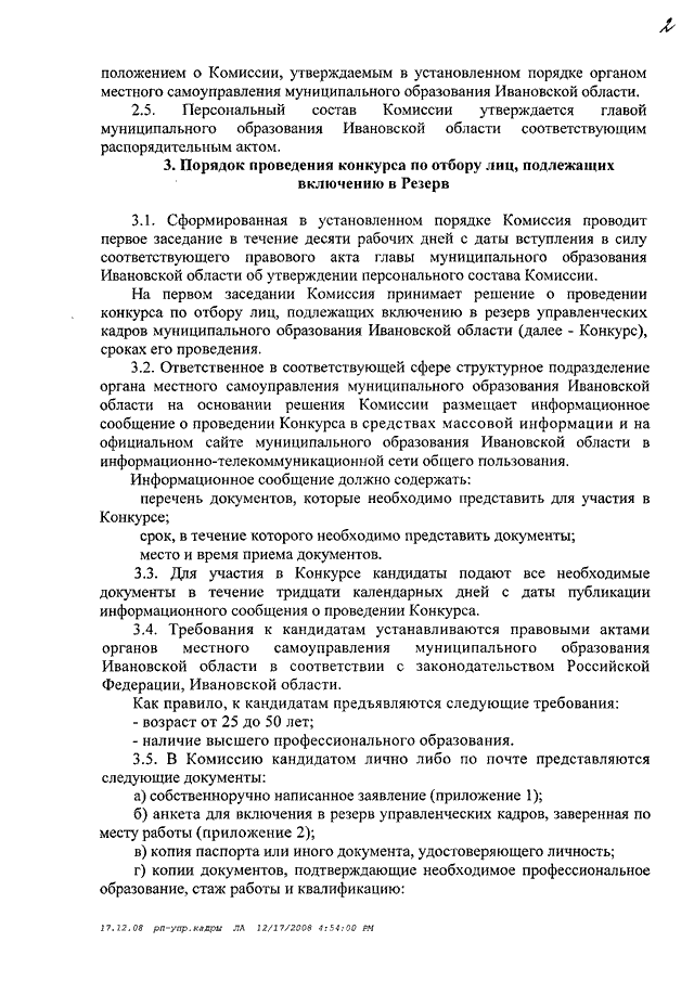 Распоряжение Правительства Ивановской области от 24.12.2008 N 485-рп "Об утверждении рекомендаций по формированию и подготовке резерва управленческих кадров муниципального образования Ивановской области"