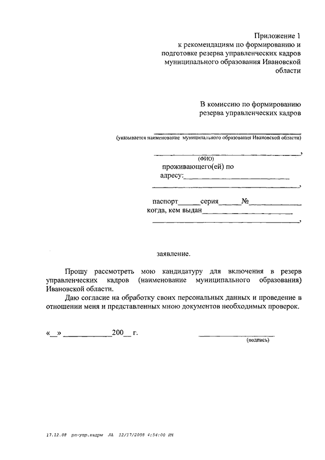 Распоряжение Правительства Ивановской области от 24.12.2008 N 485-рп "Об утверждении рекомендаций по формированию и подготовке резерва управленческих кадров муниципального образования Ивановской области"