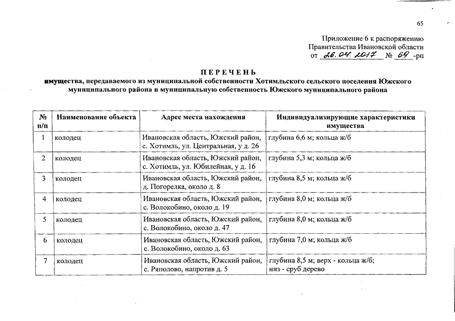 Распоряжение Правительства Ивановской области от 26.04.2017 N 69-рп "О разграничении имущества, находящегося в муниципальной собственности, между Южским муниципальным районом и сельскими поселениями, входящими в его состав, в связи с изменением перечня вопросов местного значения сельского поселения"