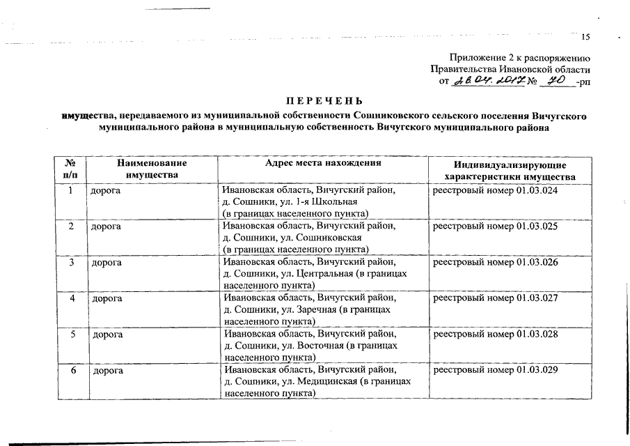 Распоряжение Правительства Ивановской области от 26.04.2017 N 70-рп "О разграничении имущества, находящегося в муниципальной собственности, между Вичугским муниципальным районом и сельскими поселениями, входящими в его состав, в связи с изменением перечня вопросов местного значения сельского поселения"