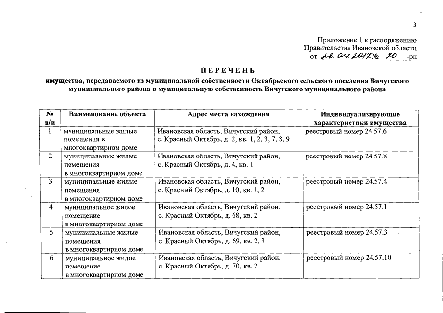 Распоряжение Правительства Ивановской области от 26.04.2017 N 70-рп "О разграничении имущества, находящегося в муниципальной собственности, между Вичугским муниципальным районом и сельскими поселениями, входящими в его состав, в связи с изменением перечня вопросов местного значения сельского поселения"