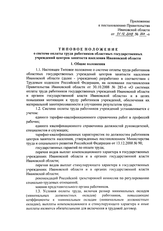 Постановление Правительства Ивановской области от 31.12.2008 N 364-п "О системе оплаты труда работников областных государственных учреждений центров занятости населения Ивановской области" (вместе с "Типовым положением о системе оплаты труда работников областных государственных учреждений центров занятости населения Ивановской области")